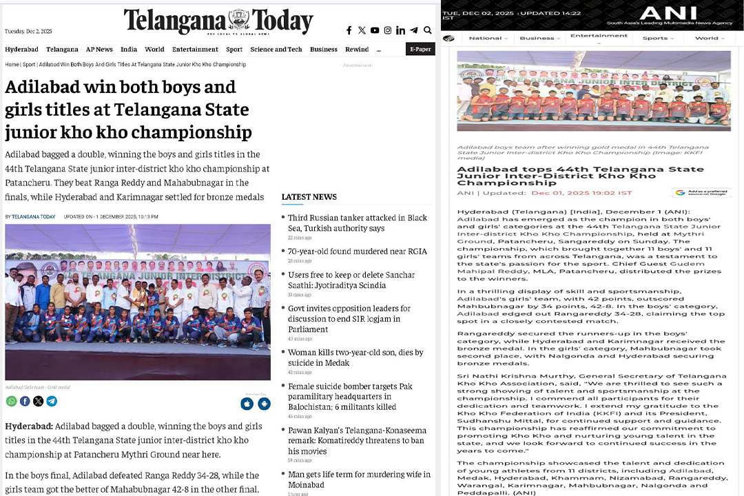 38th Junior Nationals 2018 at Bhopal (Madhya Pradesh) from 2nd to 6th December 2018. Coaching Camp conducted for Boys at Wilsongarden, Hombegowdanagar, Kho Kho Stadium, Bengaluru and Girls at Kurubur T-Narisipura Tq. from 21st to 29th November 2018, Boys Secured 3rd Place, Girls 2nd Place. Sri. K.R. Rajagopal provided Uniforms for the teams.